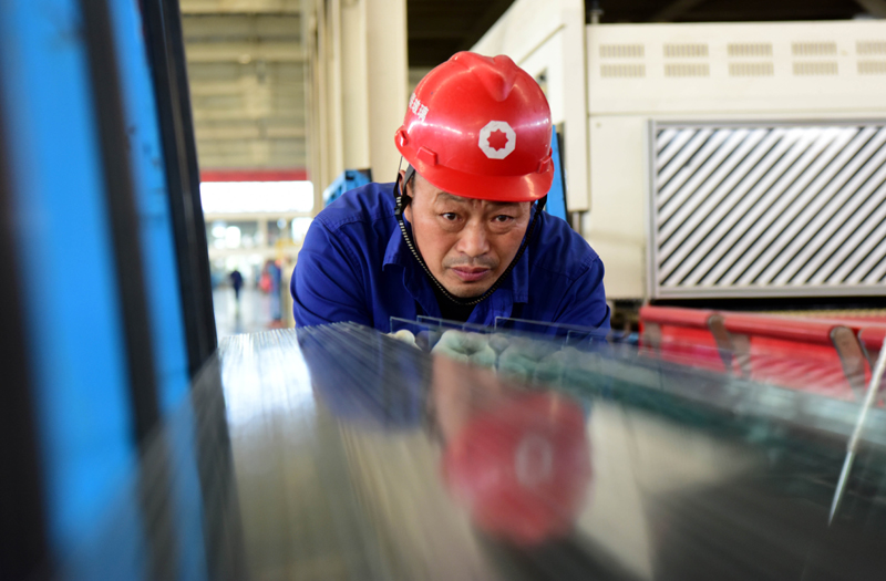 这是10月14日正在河南省中联玻璃有限仔肩公司拍摄的浮法玻璃智能化坐蓐车间▲▲。