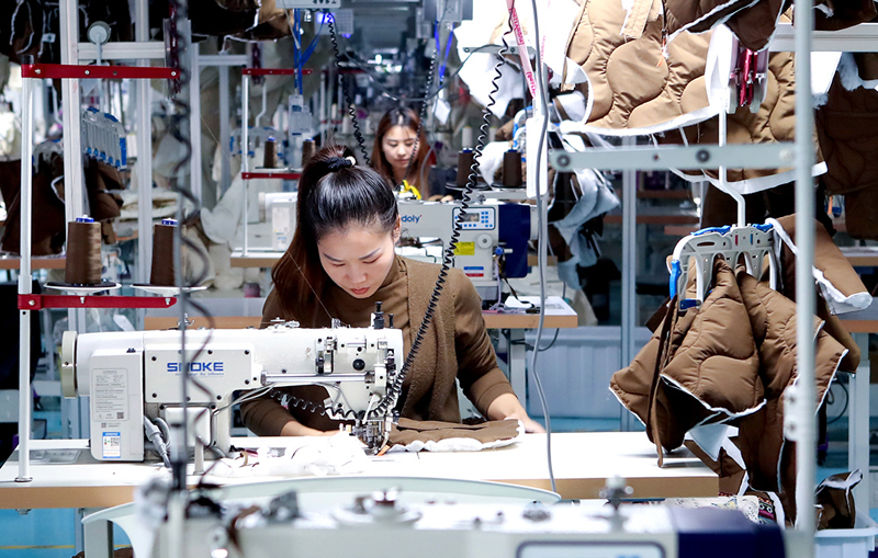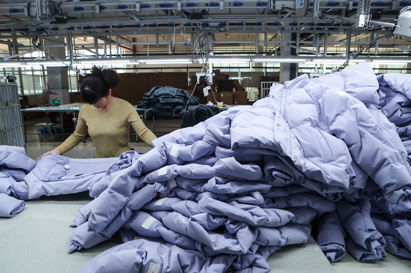 10月15日,河南省商丘市睢阳高新区东霞制衣有限公司工人赶制羽绒服订单。