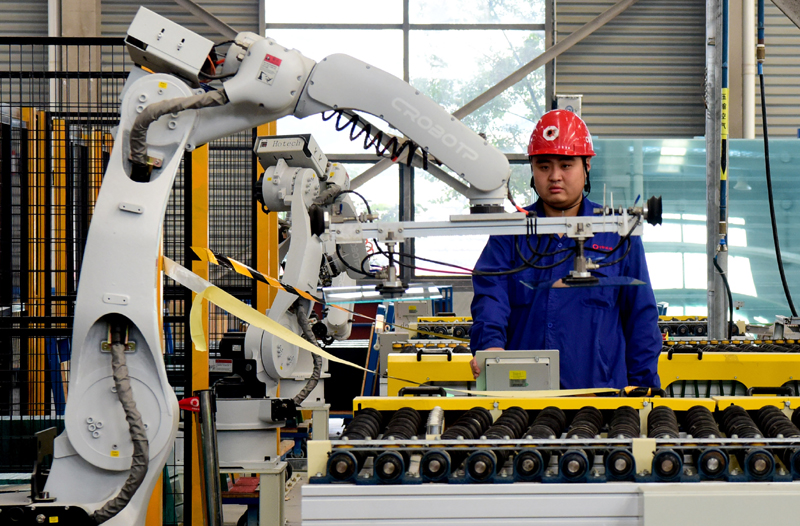 这是10月14日正在河南省中联玻璃有限仔肩公司拍摄的浮法玻璃智能化坐蓐车间▲。