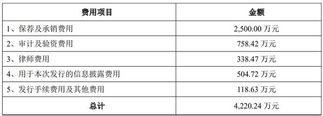 安邦护卫本次公司公然拓行新股的发行用度总额为4,220.24万元,此中保荐及承销用度2,500.00万元。