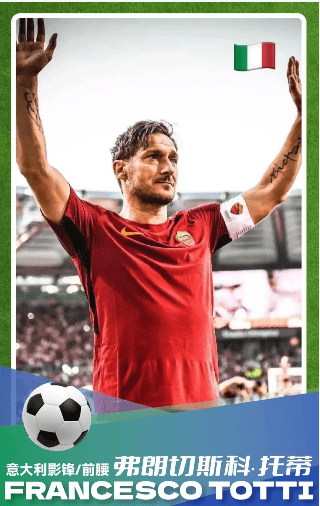 弗朗切斯科·托蒂:罗骑兵史上退场最众和进球最众的纪录坚持者,由于轮廓俊朗▲,战绩出众▲▲,人送他混名“罗马王子”、“亚平宁之狼”。